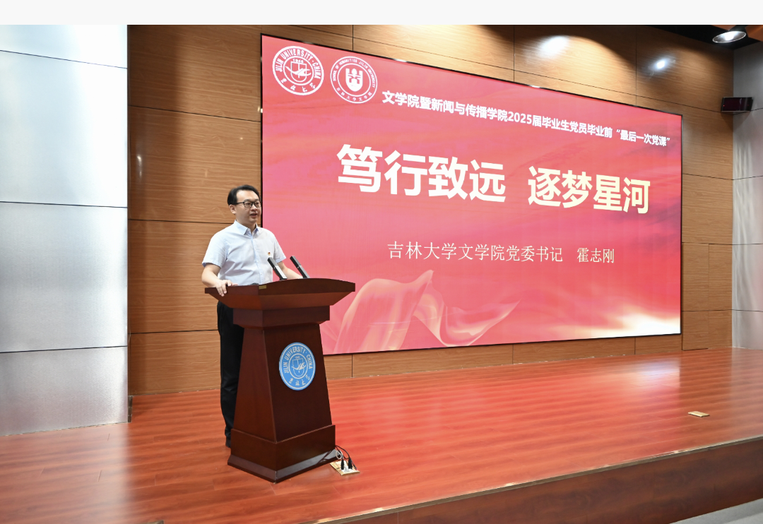 霍志刚以“笃行致远,逐梦星河”为主题,为毕业生党员们带来了一场深刻而富有意义的党课。他强调中央八项规定精神是我们党加强作风建设的重要法宝,也是密切党同人民群众血肉联系的桥梁纽带,要求党员同志们时刻以中央八项规定精神严格要求自己,始终牢记“三个务必”,做到心有所畏、言有所戒、行有所止,以吉大学子的优良党风引领社风民风向上向善。