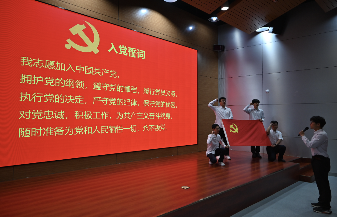 党课开讲前,由员工党员帅子星领誓,带领与会党员重温入党誓词,铿锵有力的誓言承载着党员们对党和人民做出的庄严承诺,以铮铮誓言彰显永恒初心,牢记党员使命。