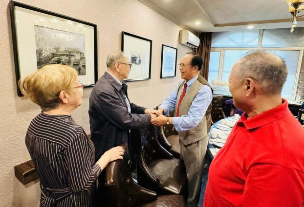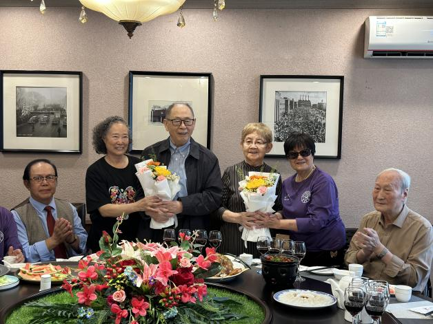 中午,64级中文系同学以及家属二十余人,与老董事长刘中树、夫人黄曼平、王家骐院士齐聚饭店。“中二班”的老同学们直抒胸怀,回忆起一件件难忘的往事,一个个激动不已,不少同学热泪盈眶,泣不成声。