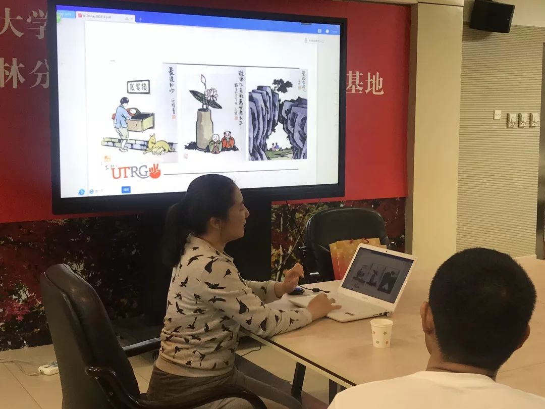 张晶分五个板块介绍本次沙龙的讲述顺序。分别是在其在赴美前,在香港大学创意媒体公司的求学经历;在美国的普雷斯科特公司的表达艺术治疗暑期公司中接触到的创意日志表达艺术;以及在课堂上创建的艺术叙事专题、艺术实习和表达艺术实践;同时结合了在社群中的具体现实经历,如在大河州立中心,米申历史博物馆等;同时,结合具体实践案例美国广告奖等来说明表达艺术实践,现场同学们认真听讲,兴趣浓厚。