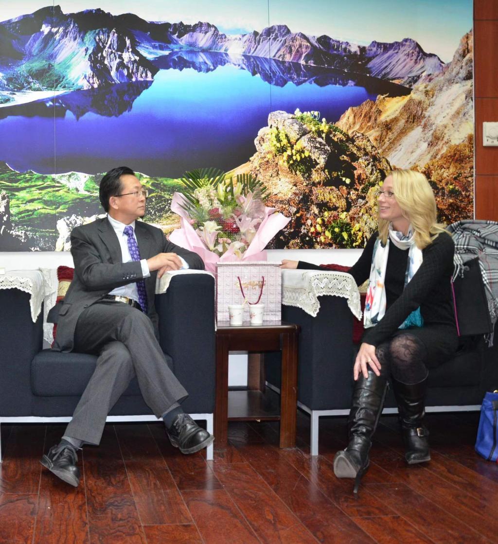 徐正考教授率与美国肯塔基大学教授座谈并赠送中国礼物