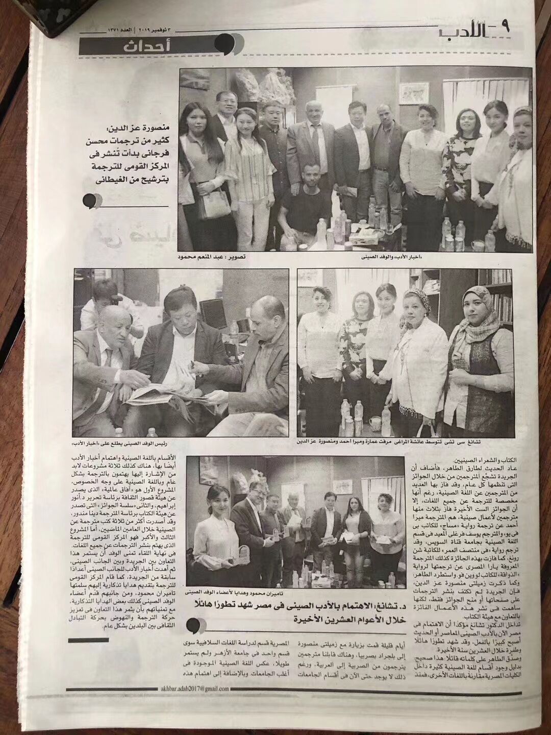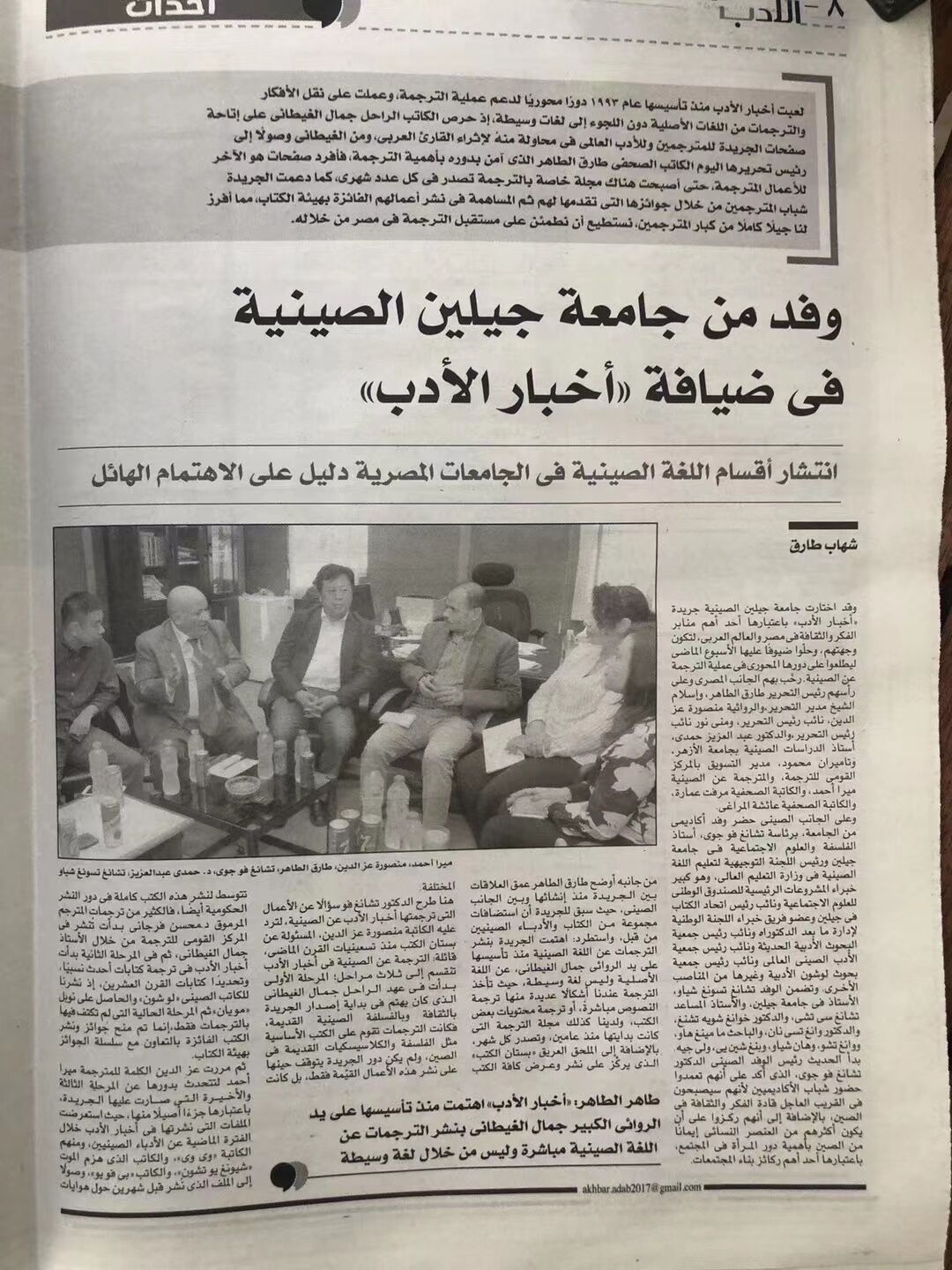 埃及第二大报纸、阿拉伯第一大文化类报纸——《文学消息报》用两个整版报道了工作组的文化交流活动。