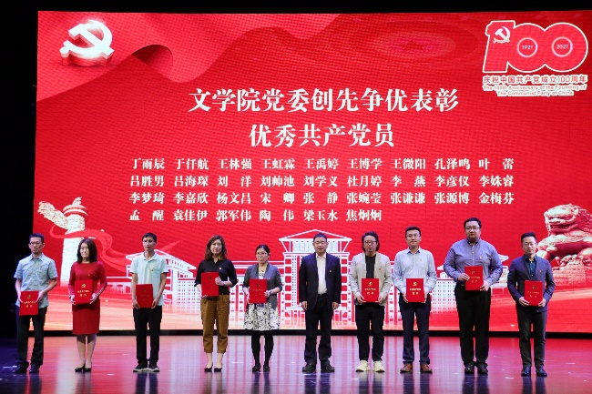 表彰大会后,师生共同观看了庆祝建党100周年音诗话晚会,本次晚会设计巧妙,采用倒叙方式将我党发展变革的百载岁月划分为建功立业新时代、改革开放换新篇、开天辟地新中国、燎原之火燃东方以及尾章五个篇章,17个节目融合音乐、舞蹈、诗歌、话剧、配音、朗诵等多种形式,。晚会现场掌声如潮,有温情、有热泪,讴歌了百年辉煌党史,突出表达着共贺党诞百年的主题