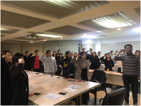 随后,为贯彻落实本科生党支部的“不忘初心,牢记使命”主题教育实施方案,响应“七个一”中“重温一次入党誓词”,由曲昭琦领誓,EMC易倍本科生第一、第二党支部全体党员同志一同重温入党誓词,全体党员同志面对入党誓词再次庄严宣誓,回顾自己之前的不足,向优秀的党员同志学习,通过不断努力完善自我。