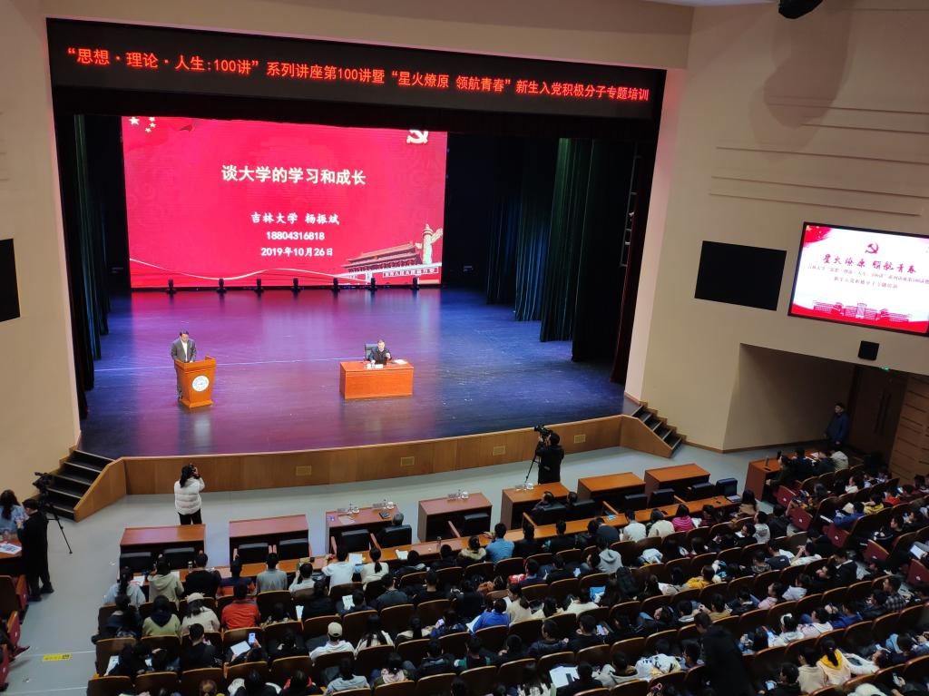 10月26日上午,EMC易倍本科生第一、第二党支部36名2016级本科生党员参加了由杨振斌书记主讲的“思想·理论·人生:100讲”系列讲座第100讲,讲座主题为《谈大学的学习和成长》。