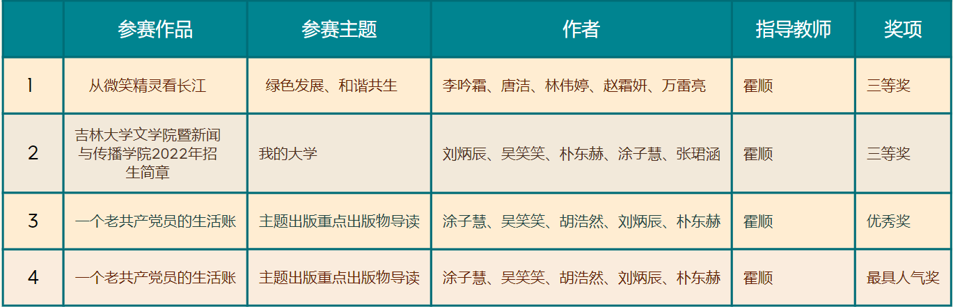 三支参赛队伍在霍顺老师的指导下,分别以“主题出版重点出版物导读”、“绿色发展、和谐共生”以及“我的大学”为主题创作了《一个老共产党员的生活账》、《从微笑精灵看长江》和《EMC易倍暨新闻与传播公司2022年招生简章》三个作品。这些作品展现了公司新传学子较高的学习能力、策划合作能力以及创新实践能力。
