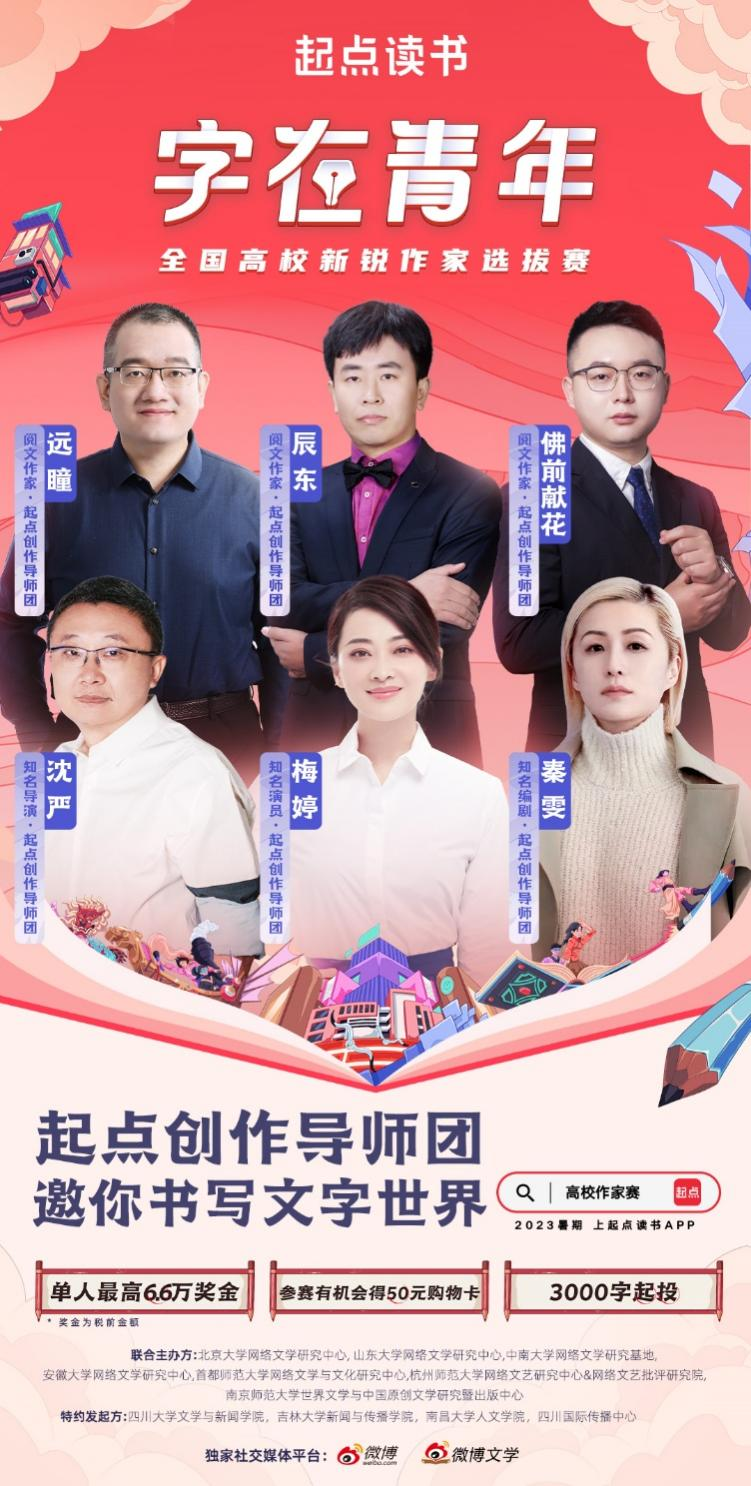 6月30日,由起点读书、四川国际传播中心联合EMC易倍平台新闻与传播公司等10所高校研究中心和公司共同举办的“字在青年”全国高校新锐作家选拔赛正式开启。本次大赛堪称网文界新时代“黄埔军校”,是网络文学历年来规模最大、资源最多、模式最强的“00后”高校网文作家选拔赛。